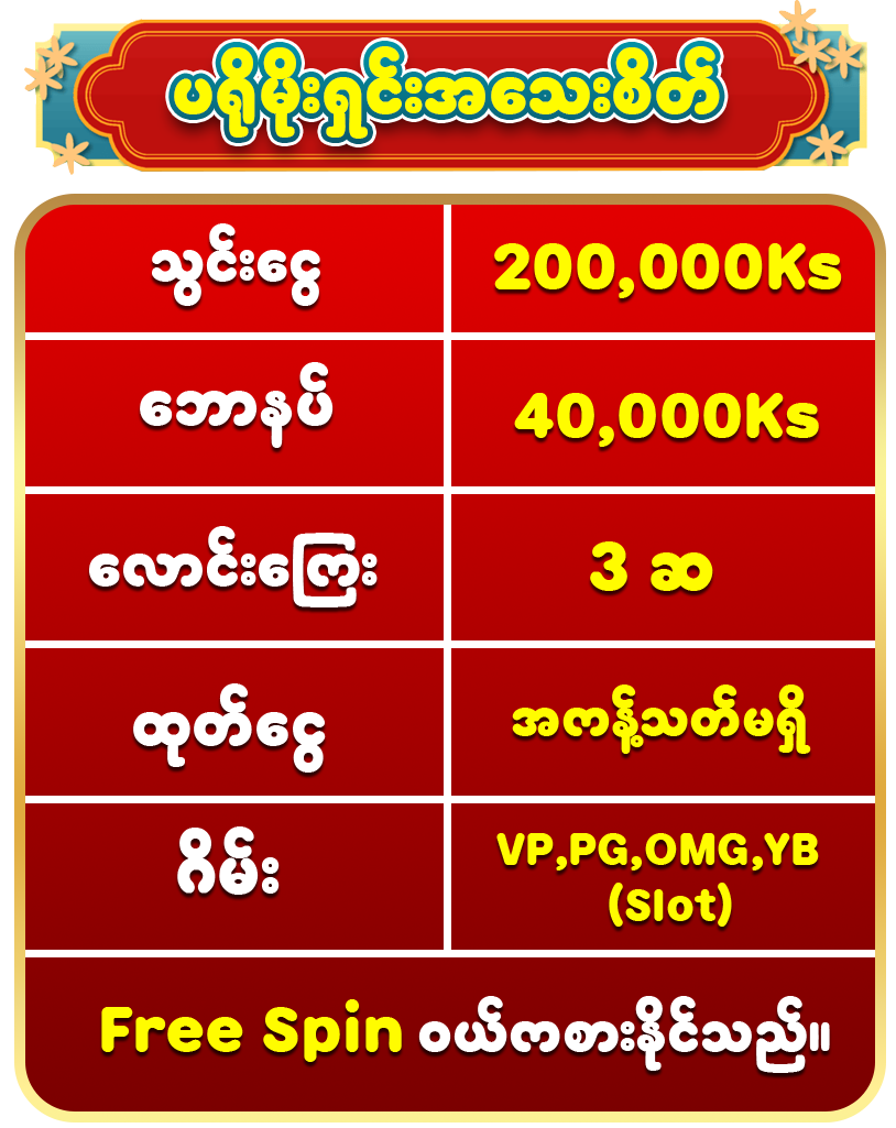 ❄️ ပ႐ိုမိုးရွင္းျဖင့္ VP / PG / OMG / YB စေလာ့ ဂိမ္းတြင္ ကစားႏိုင္သည္။ ဖရီးစပင္စိတ္ႀကိဳက္ ဝယ္ကစားႏိုင္သည္။